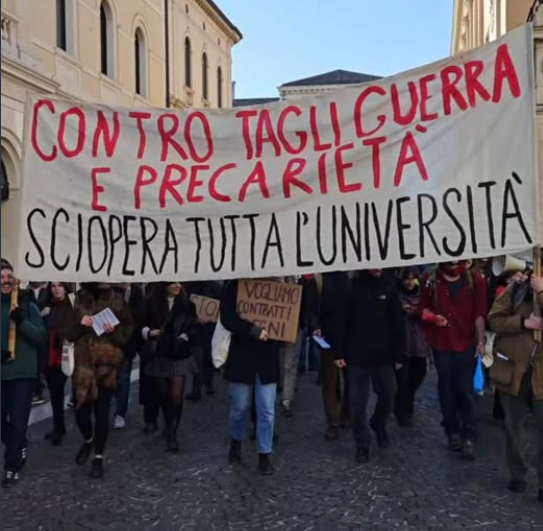Rivendicano la fine dei tagli e del precariato, il riconoscimento della loro condizione di lavoratrici e lavoratori, il rifinanziamento dell’università – oggi ben al di sotto della media europea – invece che quello agli armamenti.