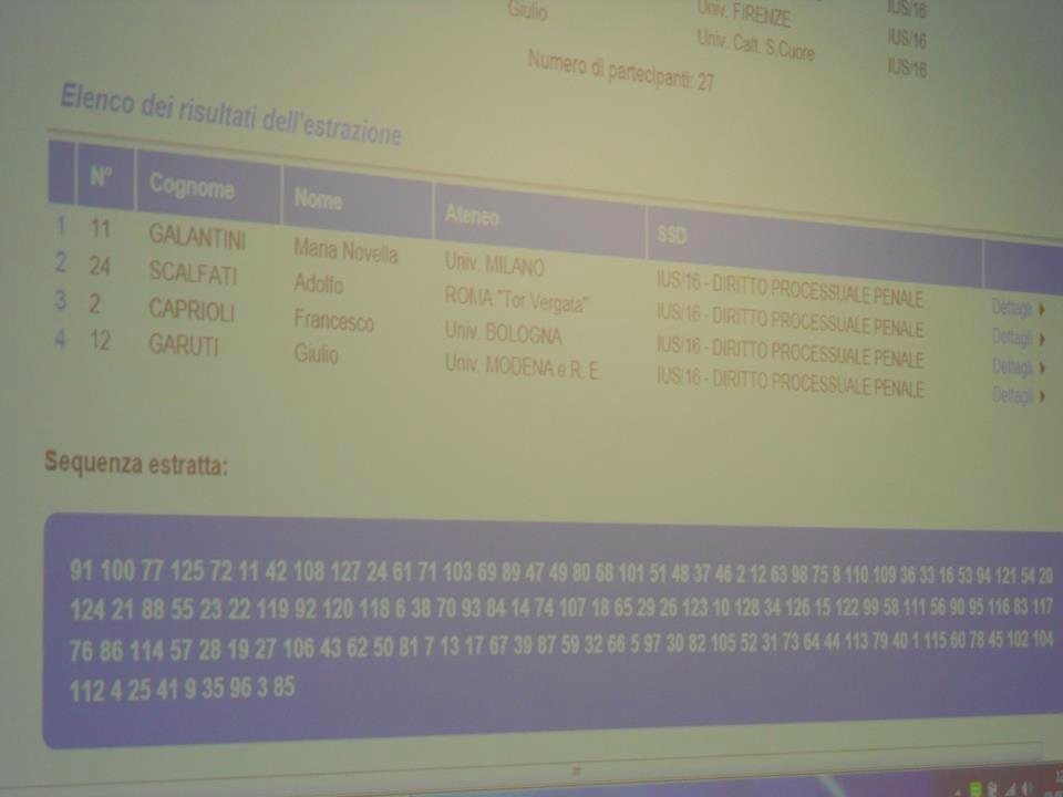 Alle 12:00 dell’1 febbraio 2013 era previsto il sorteggio dei commissari per 14 settori concorsuali: