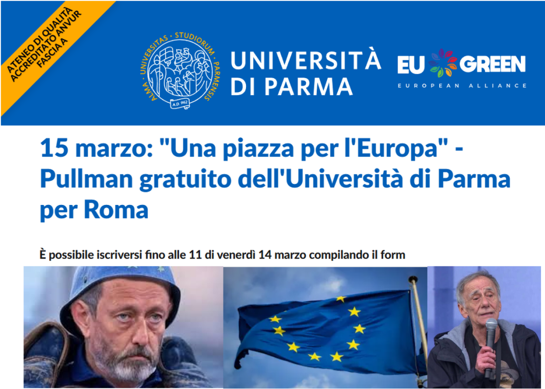 L’Ateneo ha tenuto per giorni in home page, anche se adesso è rimossa, la notizia della manifestazione a Roma intitolata “Una Piazza Per l’Europa”. Non solo: l’ateneo ha addirittura organizzato un pullman gratuito per permettere a studenti e personale di rispondere alla chiamata da parte di La Repubblica e Michele Serra.